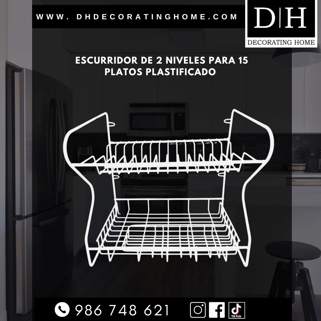 Escurridor de 2 Niveles para 15 Platos Plastificado – DH Decorating Home
